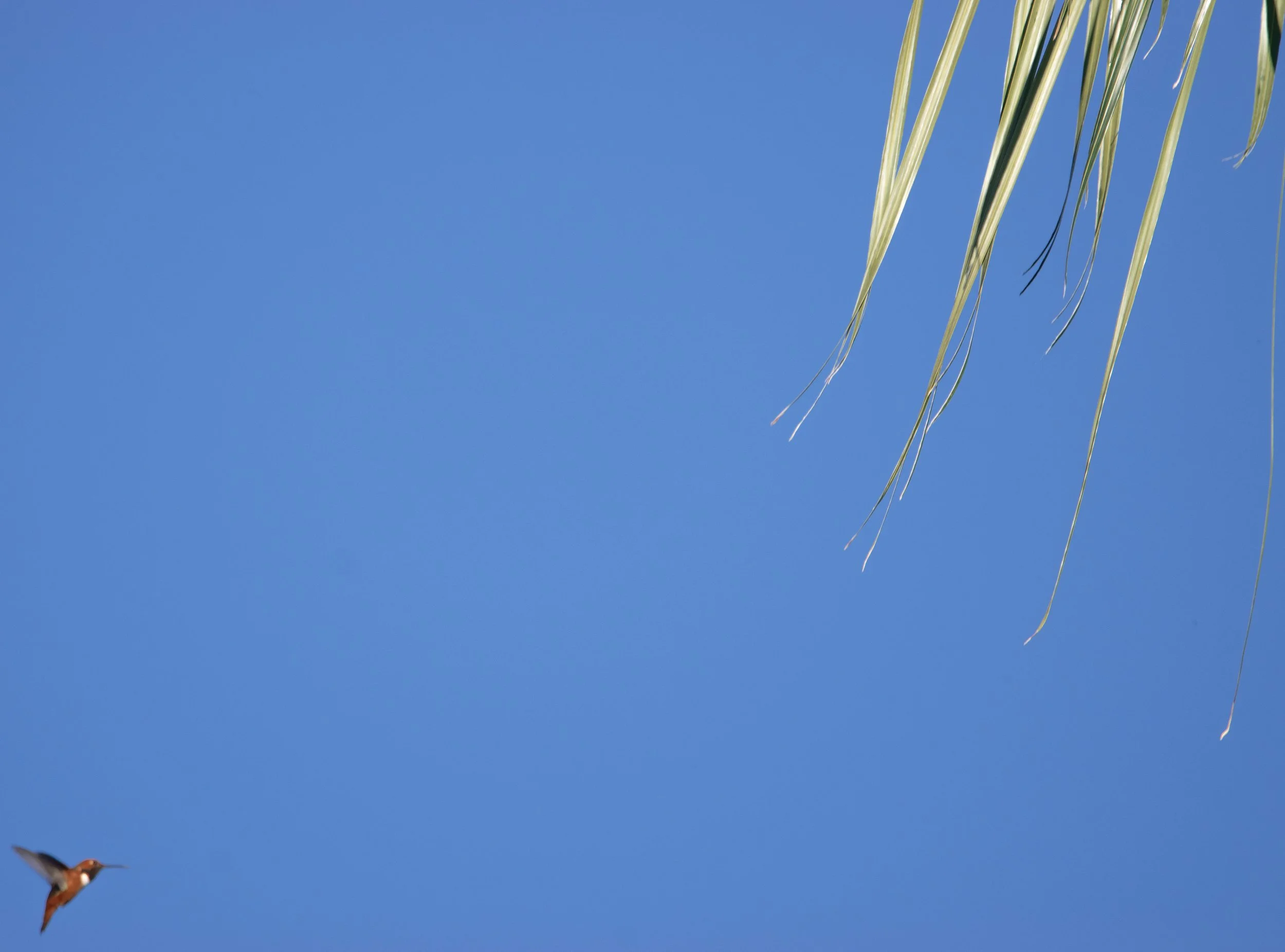 "Autofocus Gone Wrong" by Georgiana Ploss: A comparison between a tiny hummingbird and a towering palm tree, reminding us that even "mistakes" can offer perspective.